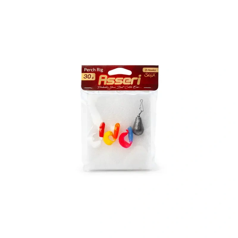 Valmis ahvenapüügi rakendus Asseri brändilt 3 konksu ja alumise raskusega. Ühele tamiilile on juba kokku pandud kolm külgharuga rakendust jigikonksude ja kummikaladega ning all on tilgakujuline raskus — kiire kasutada: seo põhiliinile ja hakka püüdma. Sobib aktiivseks ahvena otsinguks (astmeline vedu, tõsted, lohistamine) ning soovi korral saab peibutised lihtsalt enda omade vastu vahetada.
