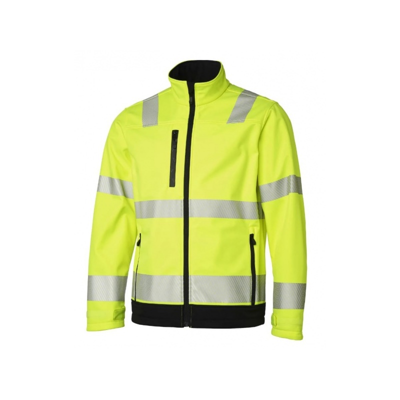 Ilmastikukindel softshell jakk fliisvoodriga, klass 3. Vetthülgav ja tuulekindel. Kaks küljetaskut, lukuga rinnatasku ja takjakinnitusega sisetasku. Parempoolses rinnataskus ID-kaardi tasku. Varrukaotsad takjapaelaga reguleeritavad. Allosas reguleeritav kummipael. Kõrge krae. Pikem seljaosa. Teibitud helkurid. Veepidavus: 15 000 mm. Toode vastab EN ISO 20471 klass 2 (XS-S), klass 3 (M-5XL) standardile. OEKO-TEX.